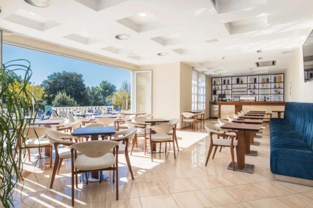 | Moderní hotel má k dispozici 62 pokojů a 5 apartmá, vstupní halu s recepcí, restauraci s terasou, snídaňovou místnost, bar, výtah, sluneční terasu, wellness - SPA, finská sauna, jacuzzi, lázně, masáže, aramoterapie (vše za poplatek), fitness (zdarma), půjčovnu kol (za poplatek). |