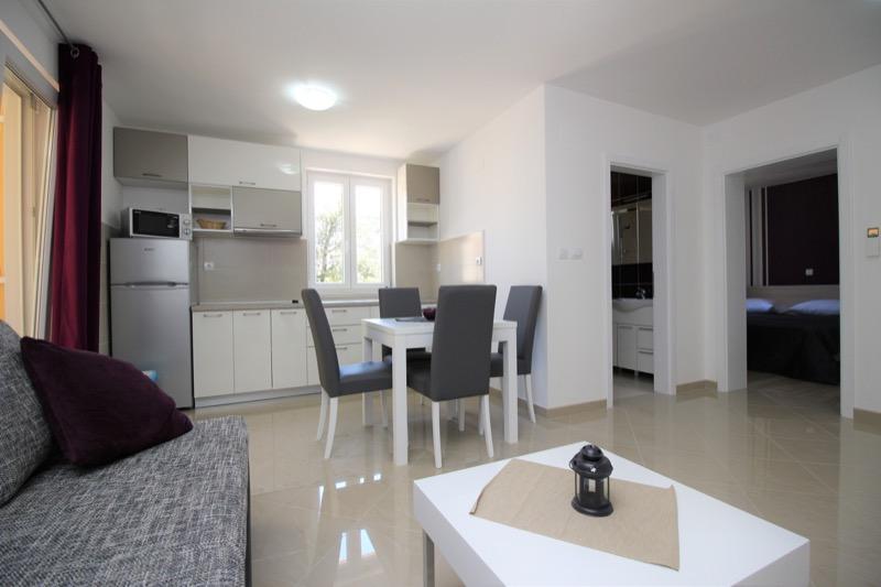 | Balkón, WC, lednička, varná konvice, koupelna, nádobí, kuchyňský kout, SAT TV, pračka, balkon, internet (WIFI), gril, parkoviště, moderně zařízené, klimatizace, jídelní kout, francouzská postel, ložnice, přistýlka, obývací místnost, 2 lůžka v obývacím pokoji, mikrovlná trouba, kávovar, gauč, sprcha, myčka |