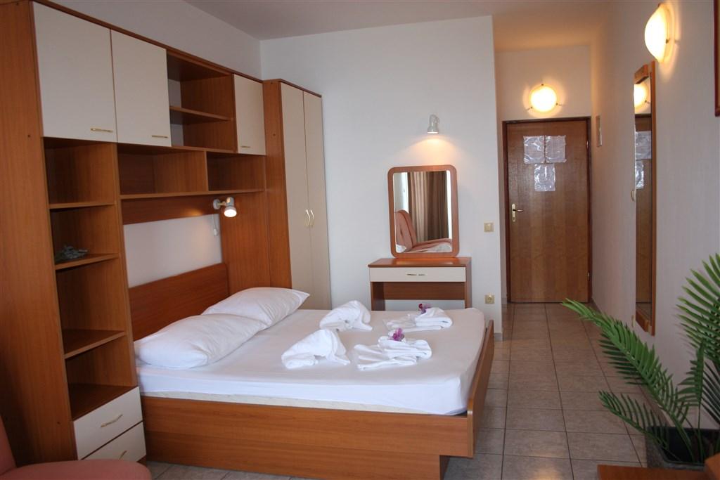 | Studio 2+1 až pro 3 osoby: ložnice s manželskou postelí a přistýlkou, součástí je malá kuchyňka, toaleta, sprcha, SAT/TV, Wi-fi internet, balkon. Apartmán 2+2 až pro 4 osoby: 1 ložnice s manželskou postelí, obývací pokoj s rozkládacím gaučem pro 2 osoby. kuchyně, toaleta, sprcha, SAT/TV, Wi-fi internet, balkon. Wifi i klimatizace jsou zahrnuty v ceně. |